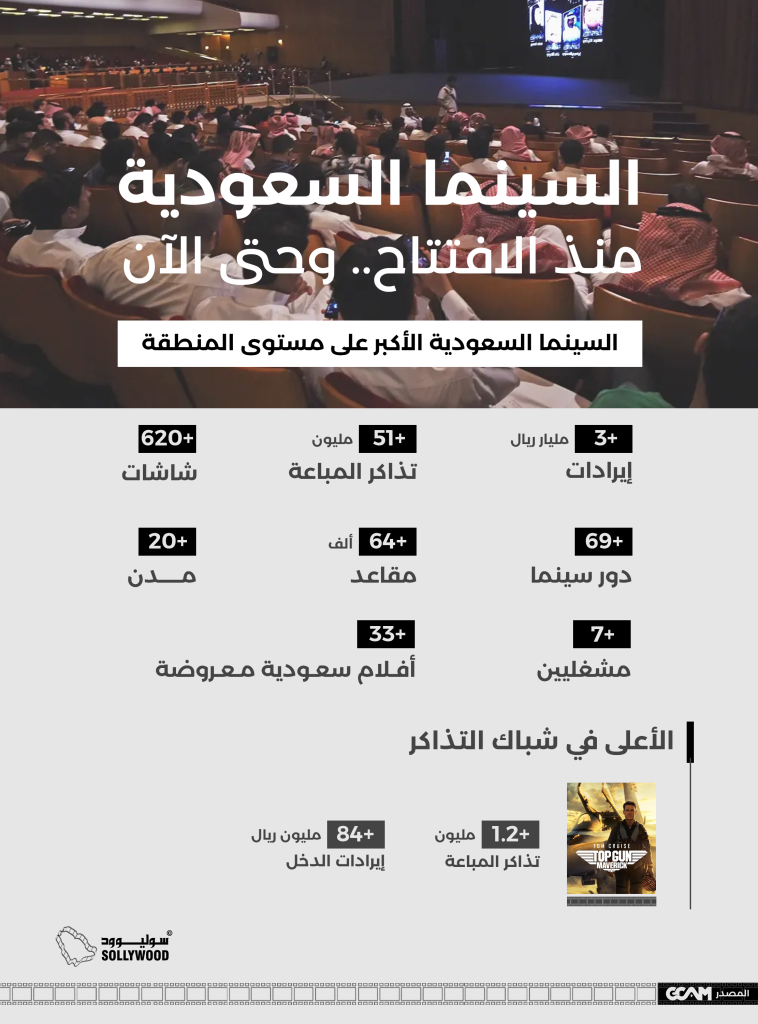 وذكرت الهيئة أن فيلم «top gun: maverick»، كان الأعلى تحقيقًا للإيرادات في السينما السعودية، بأكثر من 1.2 مليون تذكرة مباعة، وإيرادات دخل تجاوزت 84 مليون ريال.