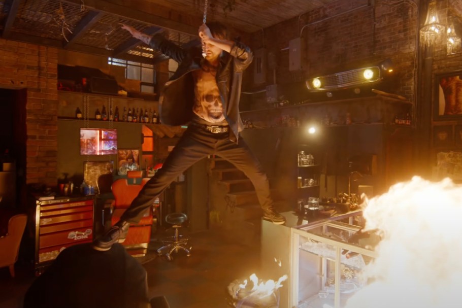 يُظهِر المقطع الدعائي فنان وشم يقوم بثقب لسان أحد عملائه بشكل مؤلم قبل أن يقوم برسم وشم لنفسه. وبينما كان يعمل، لم يلاحظ سلسلة من ردود الفعل المتسلسلة التي حدثت وأدت في النهاية إلى وفاته. سقطت سلسلة من السقف، وتعلقت بحلقة أنف الرجل، وتلتف حول مروحة وتسحبه لأعلى من أنفه بينما تندلع حريق أسفله. وبينما كان يلف نفسه، تحطمت مروحة السقف وسقط في النار.