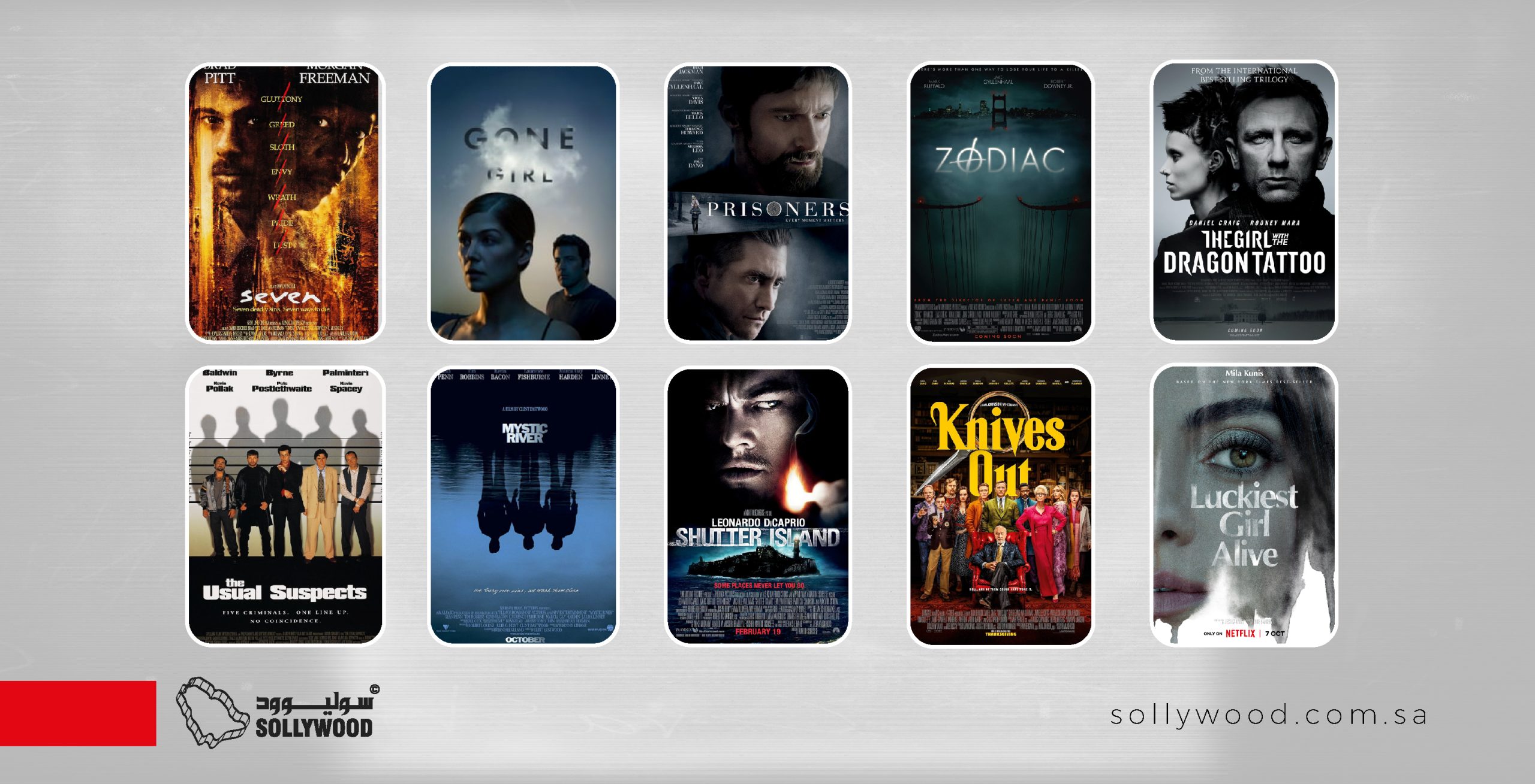 تشويق متصاعد وأحداث مثيرة ونهايات غير متوقعة تميز أفلام الجريمة والألغاز؛ ما يجعلها تتربع على عرش أفلام الإثارة والتشويق الأكثر جذبًا للجمهور؛ حيث إنها تُبقي المشاهد في حالة من الترقّب الدائم، باحثًا عن تفاصيل الحقيقة وسط الغموض والخيانات والأحداث الغامضة. وقدمت السينما الأميركية العديد من هذه النوعية من الأفلام. في ما يلي، نستعرض 10 من أبرز أفلام الألغاز والجريمة الأميركية.