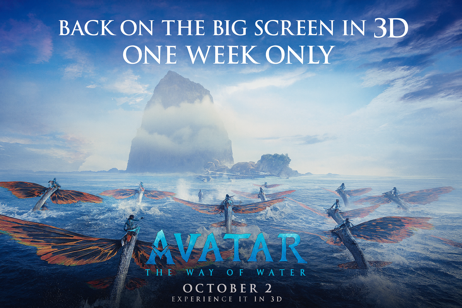 تفتح صالات السينما السعودية أبوابها يوم الخميس المقبل الموافق 2 أكتوبر 2025 لإعادة عرض فيلم الخيال العلمي «Avatar: The Way of Water». ويأتي ذلك ضمن مجموعة من الأفلام الجديدة التي يبدأ طرحها في دور العرض بالمملكة خلال عطلة نهاية الأسبوع الجاري، ليمنح عشاق السينما فرصة جديدة لمشاهدة هذا العمل البصري المذهل. إذ يعود الفيلم للعرض على شاشات السينما لمدة أسبوع واحد فقط.