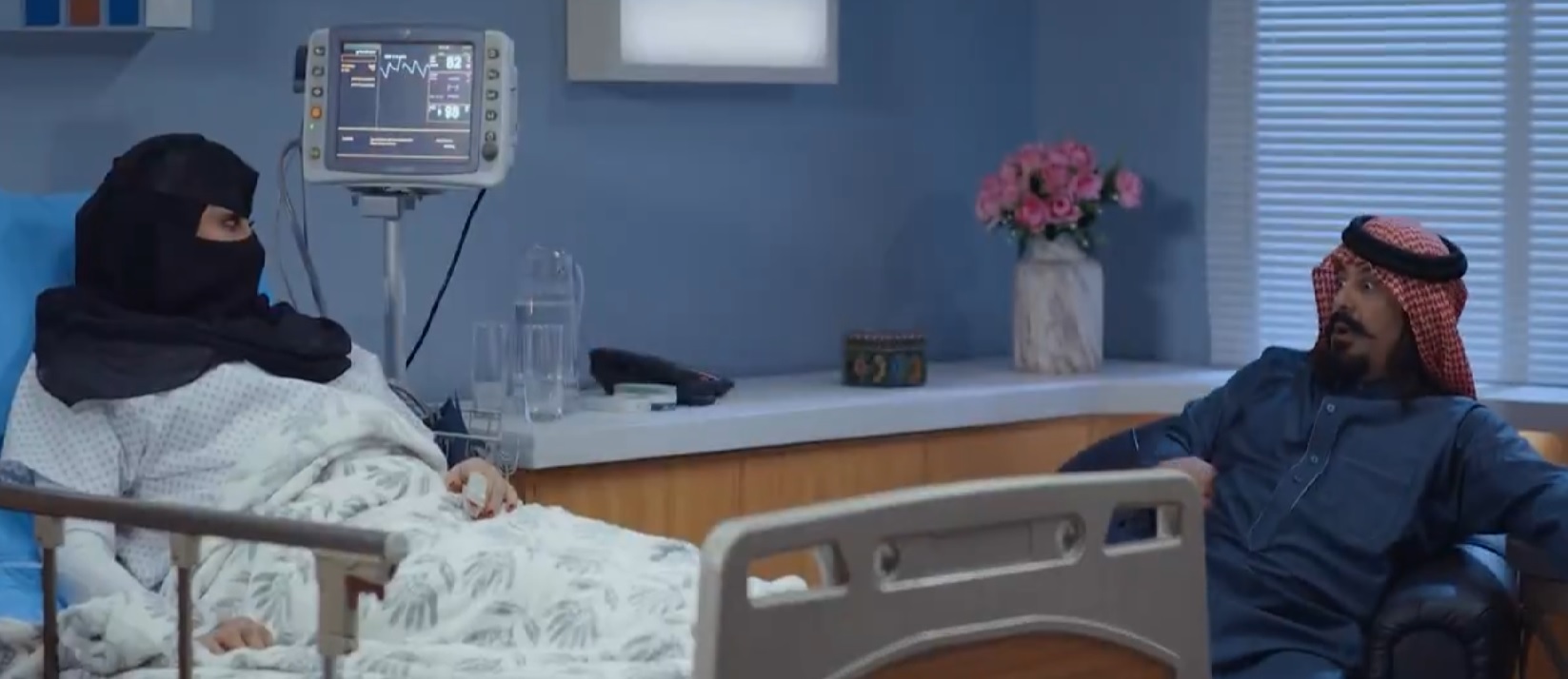 وتتصاعد الكوميديا مع دخول تفاصيل المستشفى على الخط، إذ تتحول مرافقة «أبو صامل» إلى معاناة كبيرة بسبب سلسلة أخطاء وتصرفات مستفزة، أبرزها تعامله المتوتر مع الروتين الطبي، ومحاولاته الدائمة للتهرب من المسؤوليات، ما يخلق احتكاكات متتالية مع «أم صامل» ويشعل الحوار بينهما بمواقف سريعة الإيقاع.